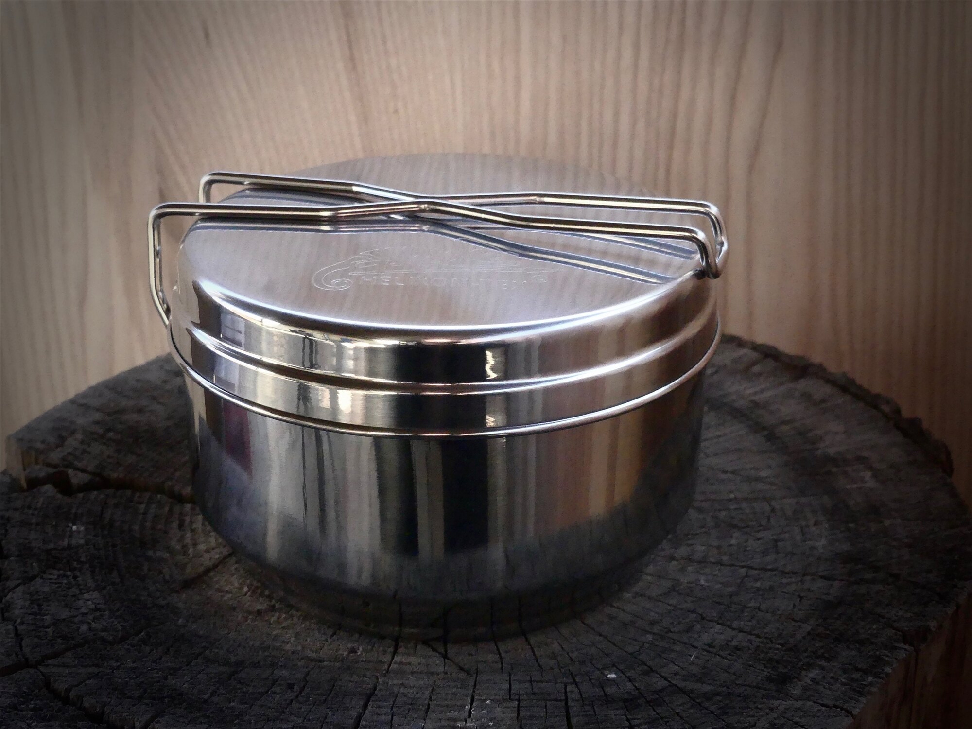 Třídílná nerezová sada od polské společnosti Helikon-Tex nabízí v této kategorii skvělý poměr ceny a kvality. Všechny části, o kterých si něco povíme dále, je možné složit do jednoho kompaktního celku. Díky tomu je tato sada ešusů lehká a skladná, přesně tak, jak od outdoorového vybavení požadujeme.