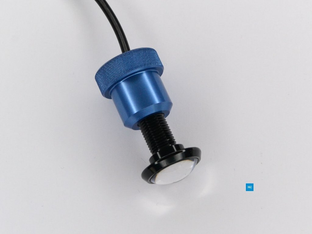 - balení obsahuje LED světlo, modře eloxovanou matici, kolébkový vypínač, zdroj napětí a příchytky kabelu opatřené oboustrannou lepicí páskou
