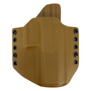 Kydexové pouzdro RH Holsters OWB CZ P-10 C má standardní sklon 0° kolmo k zemi. Jde o Nejžádanější variantu, která umožňuje rychlý přístup ke zbrani a hladké tažení. Individuálně nastavit lze sílu sevření zbraně.
