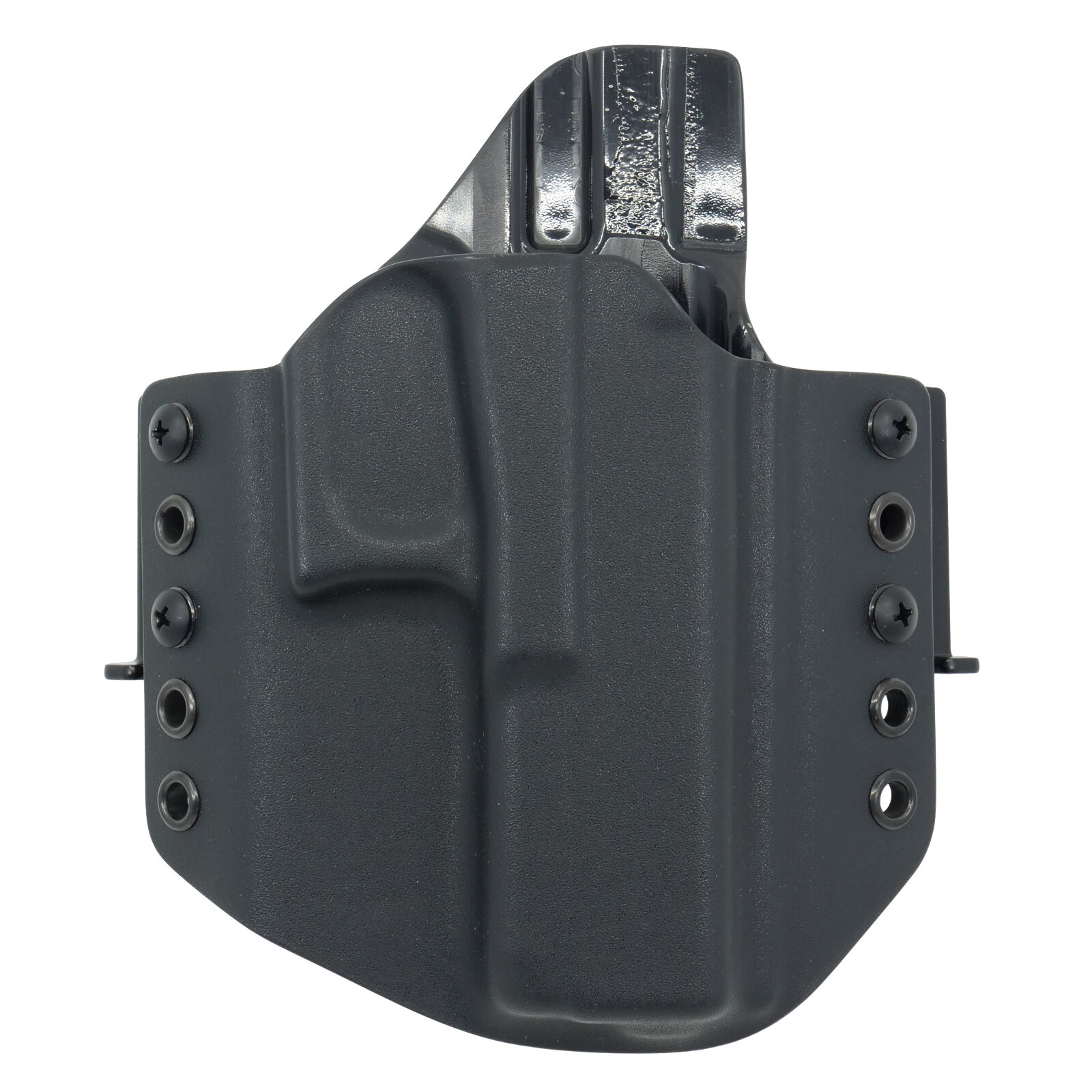 OWB pouzdra z Kydexu tloušťky 2 mm perfektně pasují na vámi zvolenou zbraň, protože jsou lisována za vysokého tlaku a přesně stanovené teploty. Pouzdro má ostré detailní prolisy, které přechází v oblé a hladké ručně broušené hrany. Každé vnější pouzdro je ze dvou plátů kydexu. Ty jsou spojeny dutými nýty. Materiál je odolný vůči působení chemických sloučenin, je mrazuvzdorný a neškodí mu ani voda. Dalšími plusy je jeho nízká hořlavost a odolnost vůči oděru. Těmito vlastnostmi předčí klasická kožená, textilní, nebo plastová pouzdra.
