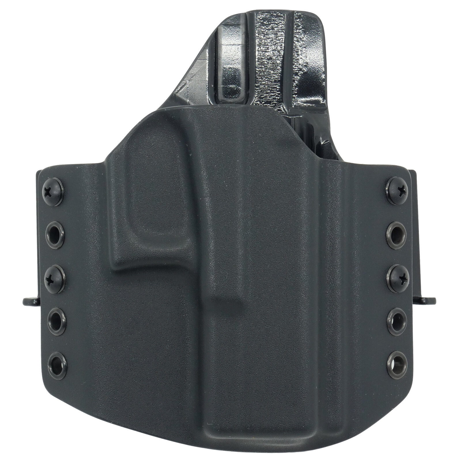 OWB pouzdra z Kydexu tloušťky 2 mm perfektně pasují na vámi zvolenou zbraň, protože jsou lisována za vysokého tlaku a přesně stanovené teploty. Pouzdro má ostré detailní prolisy, které přechází v oblé a hladké ručně broušené hrany. Každé vnější pouzdro je ze dvou plátů kydexu. Ty jsou spojeny dutými nýty. Materiál je odolný vůči působení chemických sloučenin, je mrazuvzdorný a neškodí mu ani voda. Dalšími plusy je jeho nízká hořlavost a odolnost vůči oděru. Těmito vlastnostmi předčí klasická kožená, textilní, nebo plastová pouzdra.
