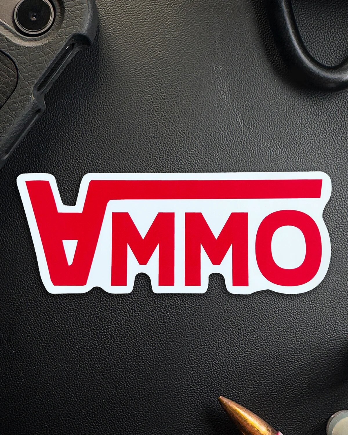 Samolepka AMMO je jednoduchá, ale výstižná – výrazný nápis v kontrastní typografii, který okamžitě upoutá pozornost. Ideální pro každého, kdo má blízko ke zbraním, střelbě nebo vojenskému stylu.