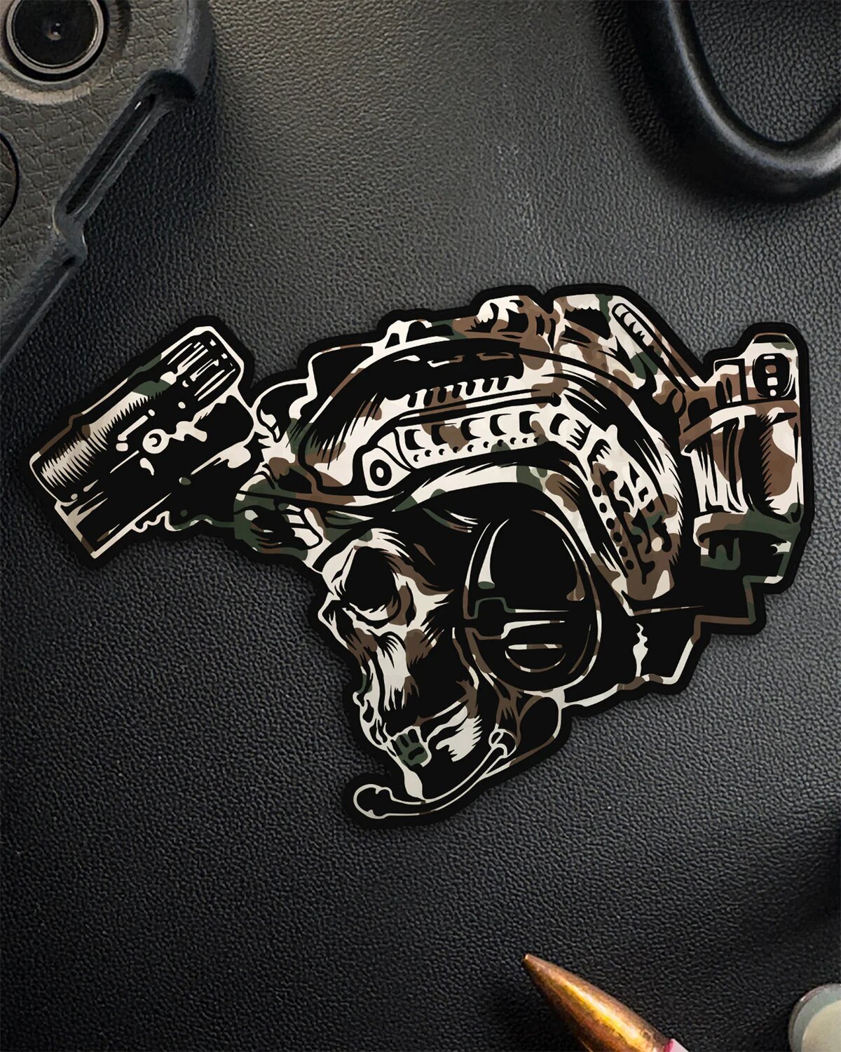 Síla bratrství v maskovacím kabátě. Samolepka BIA Camo přináší ikonické logo Brothers in Arms – lebku s taktickou helmou a nočním viděním – v maskovacím designu, který spojuje vojenskou estetiku s odhodláním a jednotou. Prémiový vinylový tisk a odolný materiál zajišťují dlouhou životnost, ať už ji umístíte na notebook, láhev nebo zbraňový kufr.