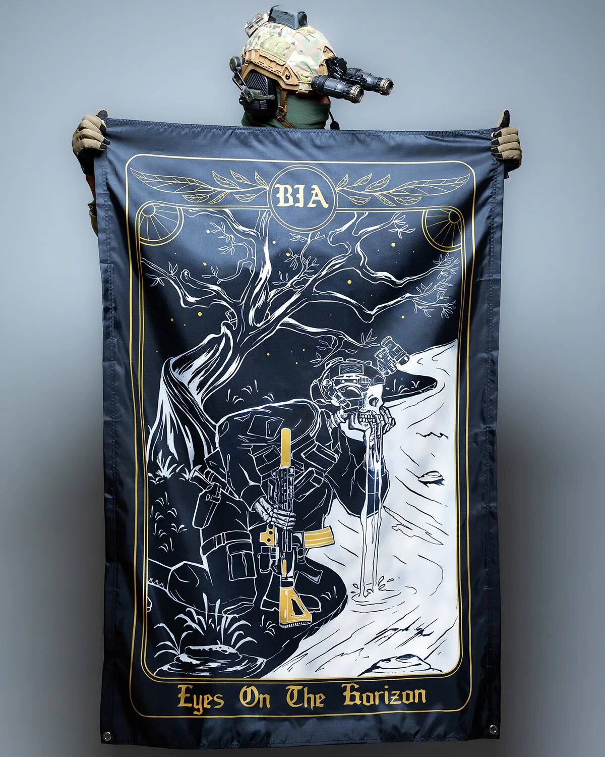 Vlajka Horizon od Brothers in Arms je vizuálním manifestem pro ty, kteří věří v sílu výhledu na horizont. S rozměry 1,5 m × 1 m a čtyřmi robustními kovovými oky je připravena zdobit váš domov, posilovnu nebo kasárna. Tato vlajka není jen dekorací – je prohlášením o odhodlání a neústupnosti.​