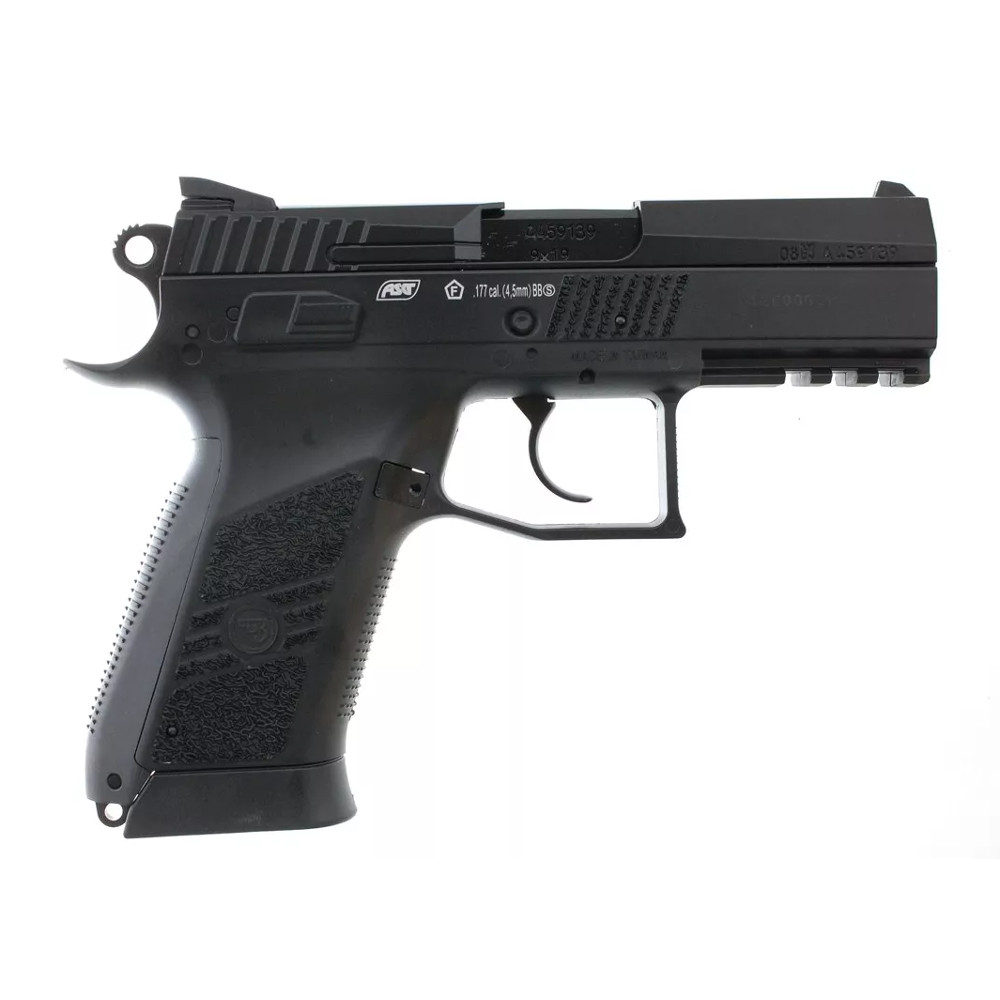 Vzduchová replika zbraně České zbrojovky s blowbackem. Nabíjí se ocelovými broky a pohon funguje na CO2 bombičku.. ASG CZ-75 P-07 Duty je výborná vzduchová replika, od originálu České zbrojovky téměř k nerozeznání. Nabíjí se ocelovými BB broky, které po 20 kusech vkládáte do zásobníku. Do komory v zásobníku se vkládá i 12g CO2 bombička. S jednou bombičkou vystřílíte asi 60-70 broků.